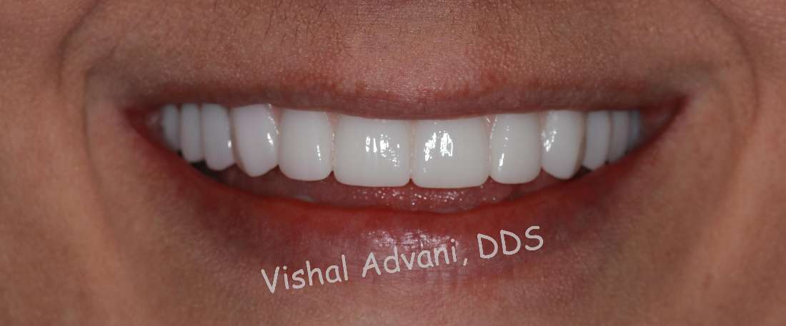Our lovely patient had upper and lower teeth that were breaking and getting cavities over a number of years. The teeth could not be saved and our patient wanted a permanent solution to be able to eat comfortably and smile without any issues. The upper and lower teeth were removed and implants were placed at the same time on the top and bottom using IV sedation. The permanent all-zirconia bridges were placed by Dr. Vishal Advani and our patient could not have been happier.